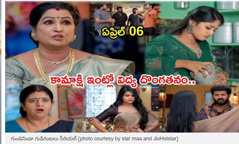 Gunde Ninda Gudi Gantalu 2026 April 06 Episode (photo courtesy by star maa and JioHotstar)